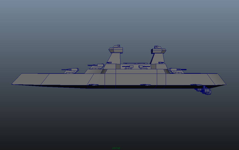 This looked a bit short and fat, particularly compared to the original inspiration, WW2 battleships, so I stretched it a bit, which gives much nicer lines.